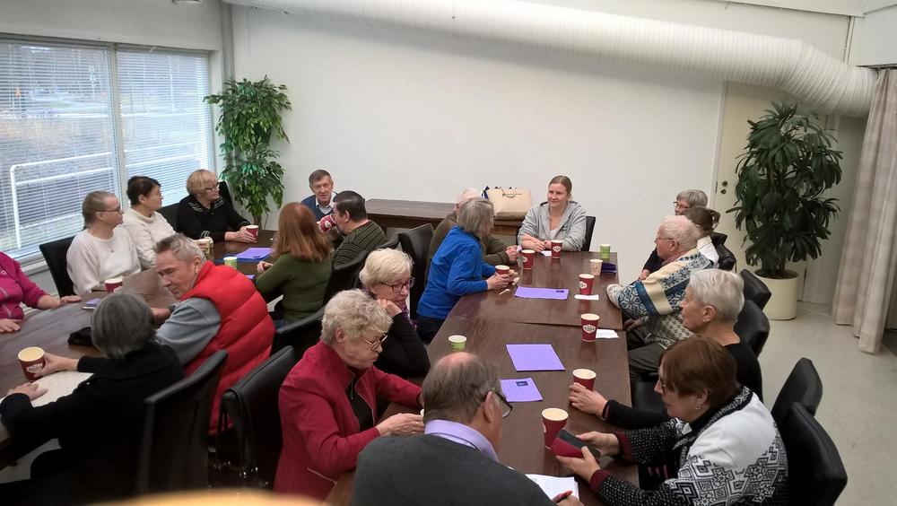 28.112017 Kuukausitapaamisessa Nesteen kokoushuoneessa kuuntelimme Kuhmoisten liikunnanohjaaja Pipsa Suomisen esittelemän valtakunnallisen Voimaa Vanhuuteen hankkeen. Esitys kirvoitti paljon kysymyksiä ja mielenkiintoa kuntoilusta sekä liikunta mahdollisuuksista Kuhmoisissa.