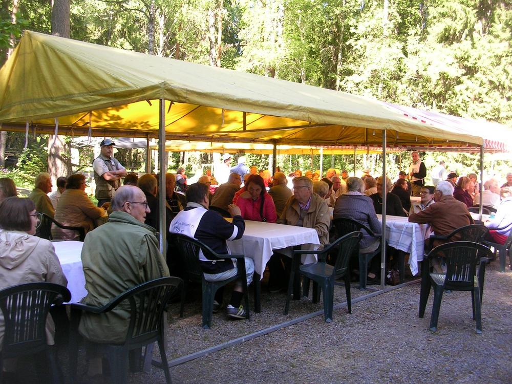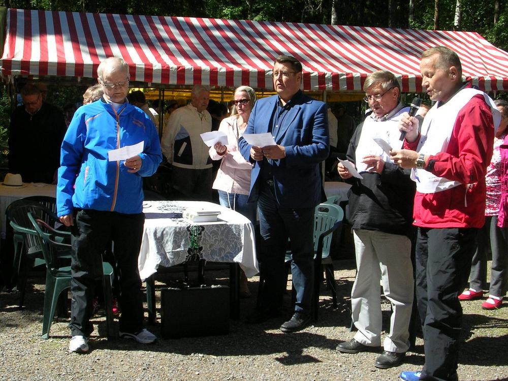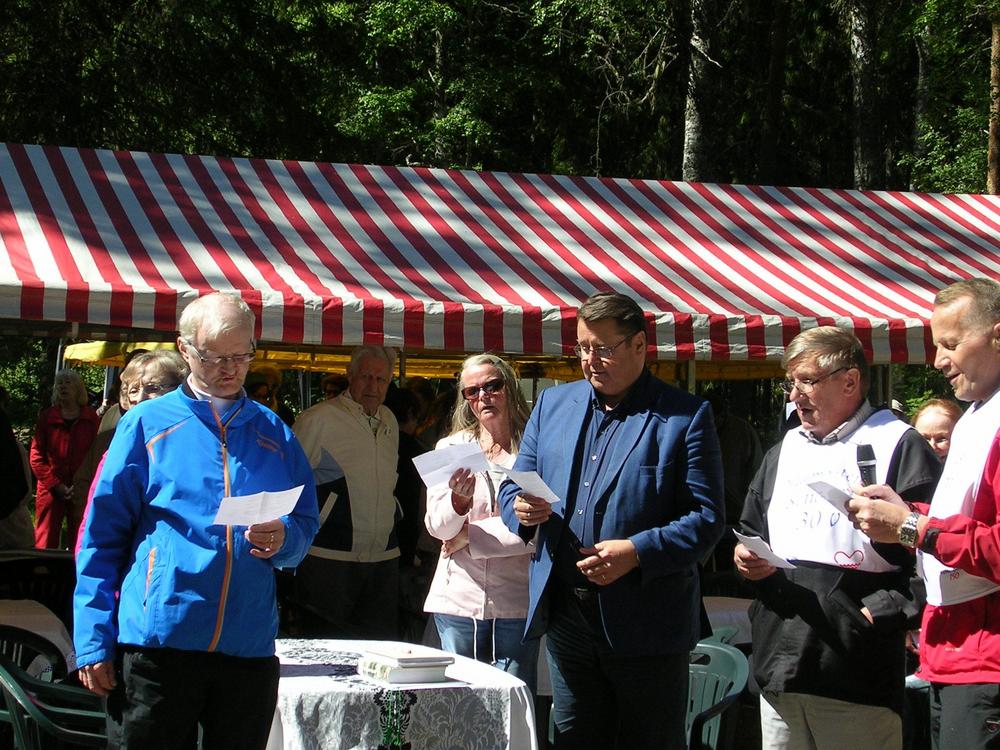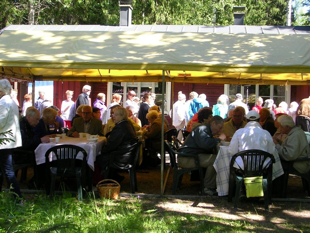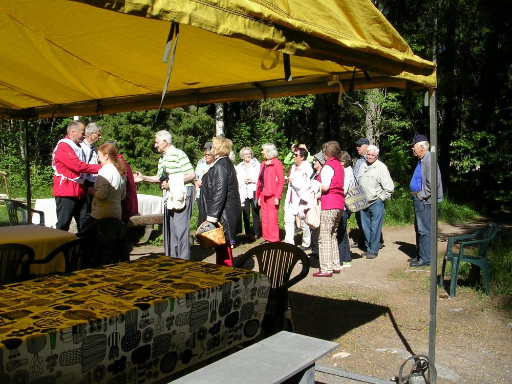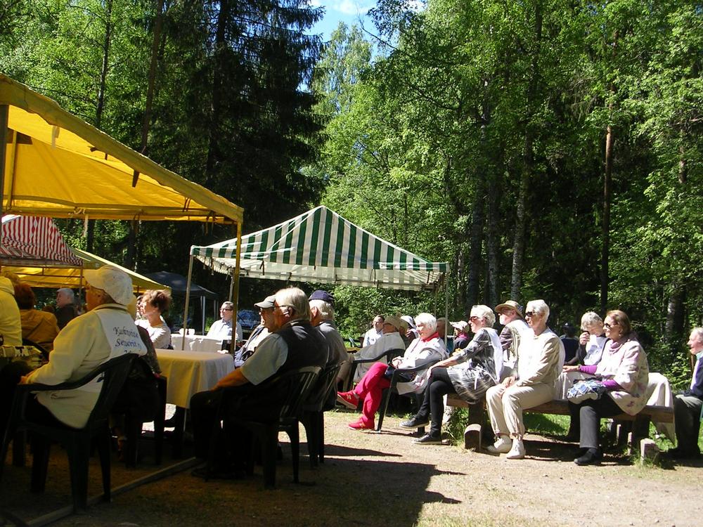 Päivä alkoi tulokahvilla ja sämpylällä Sahanrannasta josta jatkettiin linja-autoilla juhlapaikalle. Matkaan sisältyi opastettu kierros Kuhmoisten keskustan alueella. Saadun palautteen perusteella tämä opastettu kierros oli mainio ja kertoi kunnan elinvoimasta.