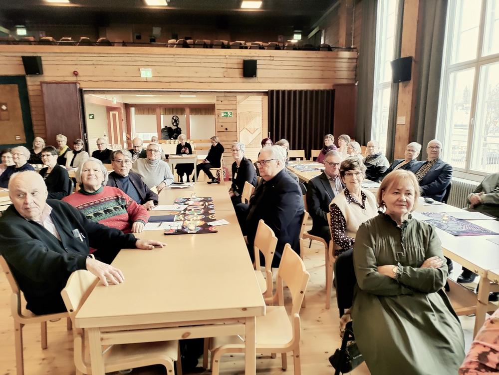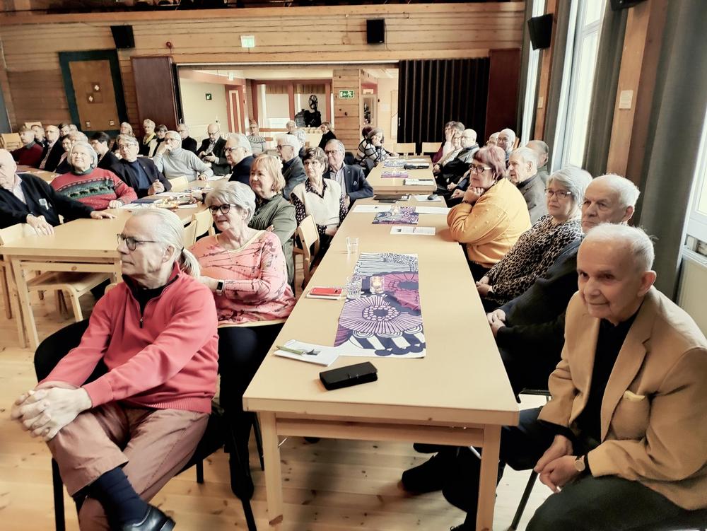 Tänään Kuhmolassa järjestettiin Senioriliiton Hämeenpiirin syyskokous. Tilaisuus aloitettiin Hämäläisten laululla. Tilaisuudessa esiintyi Urho Tuhkanen ja Unehtumattomat nuorten perustama yhtye. Kokouksessa Kuhmoisten kunnanjohtaja Valtteri Väyrynen kertoi kunnan kuulumiset ja Seppo Unnaslahti Kuhmoisten historiasta. Kokouksen avasi Hämeenpiirin puheenjohtaja Pirjo-Liisa Snellman-Tenhunen, kokouksen puheenjohtajaksi valittiin Kuhmoisten Martti Kankkunen ja sihteeriksi Kuhmoisten Liisa Häkkinen. Heidän johdollaan kokous sujui sutjakkaasti. Lopuksi päästiin yhteen mieleenpainuvimmasta tapahtumasta eli hirvikeiton ja kakkukahvien nauttimiseen.