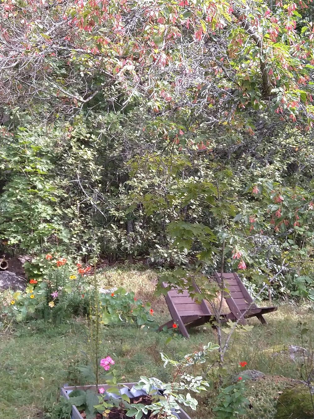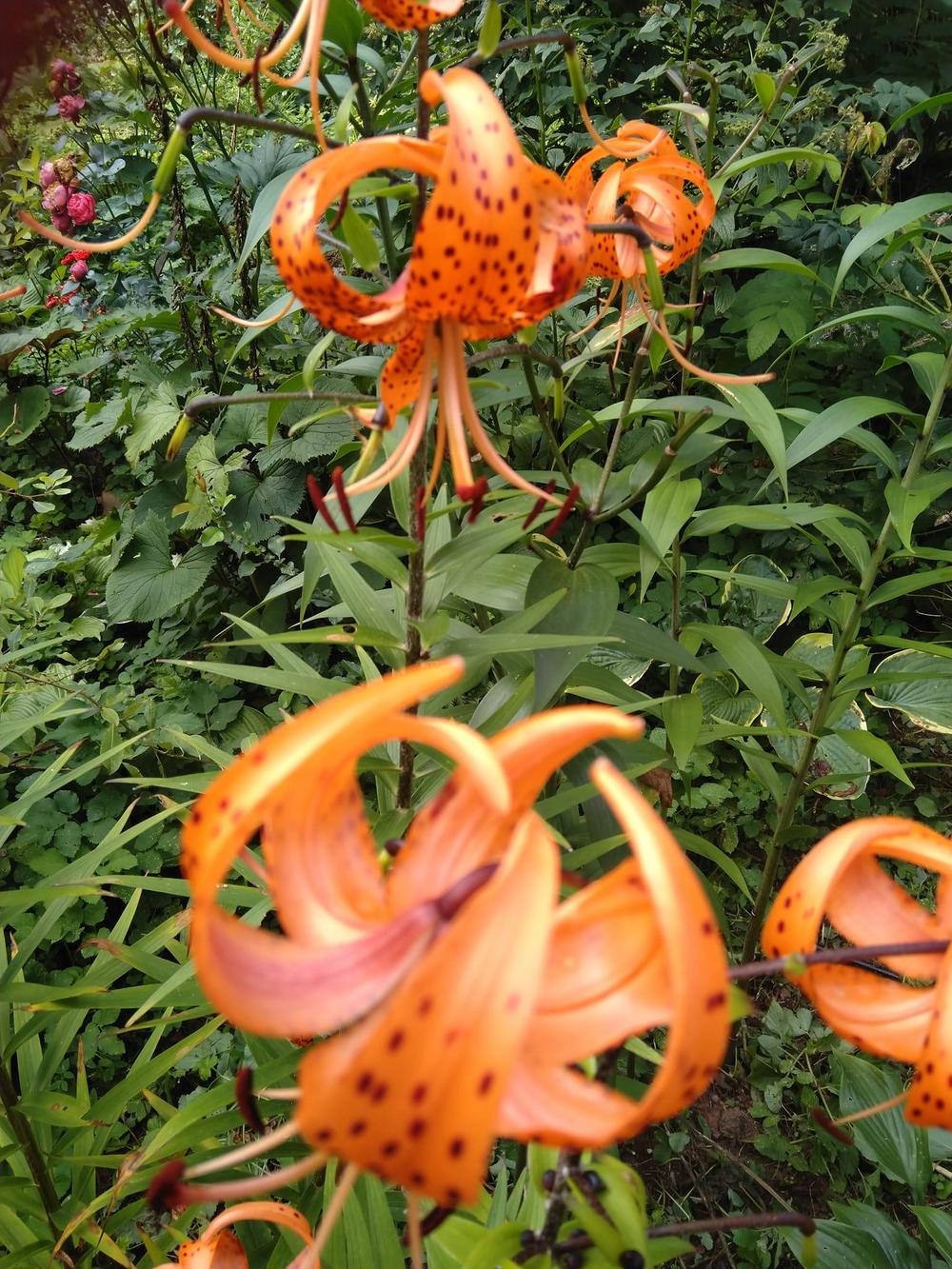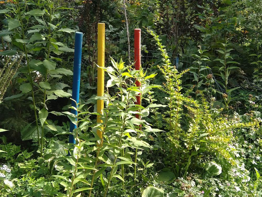 Kaikkien kasvien nimet eivät jääneet mieleen mutta se periaate että nurmikkoa ei ole ja kasvit täyttävät koko puutarhan. Runsaasti kukkivia perennoita, pensaita, puita joiden välissä polkuja. Perhoset, hyönteiset, sammakot viihtyvät. Sekä talon asukkaat tietysti. Vierailijoille riittää kertomuksia. Kuivahtanut puu toimii nyt köynnöskasvin tukena esimerkiksi. Cottage Garden!