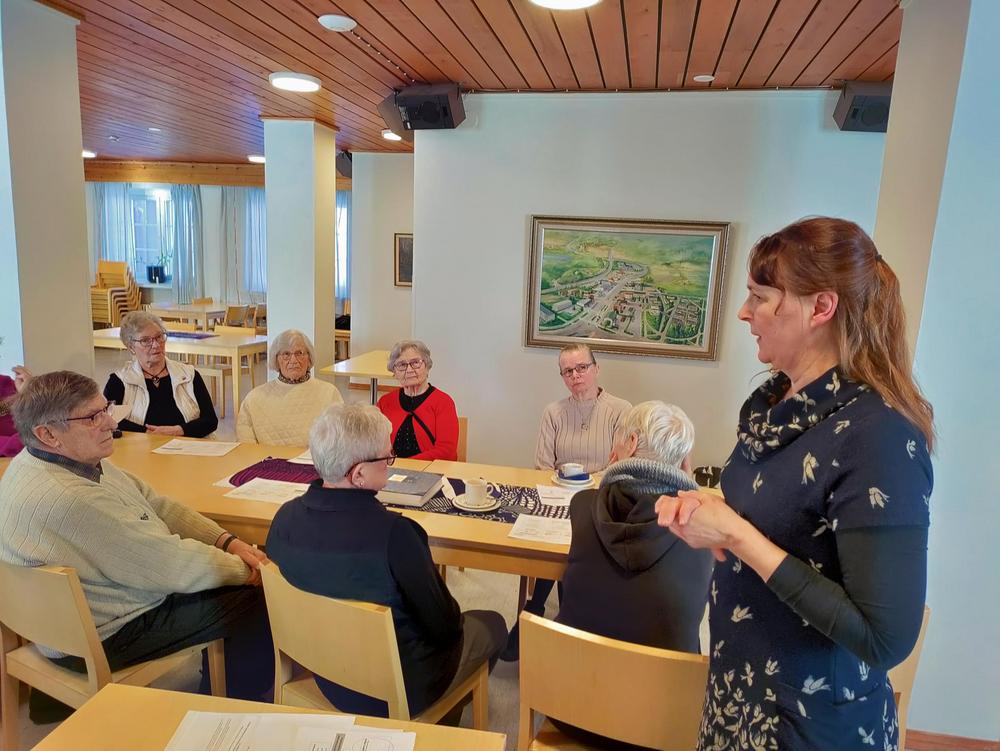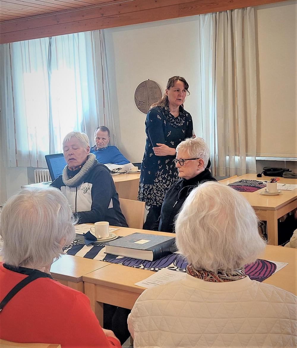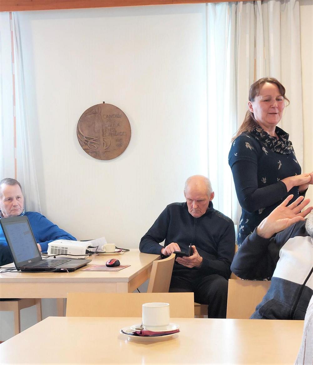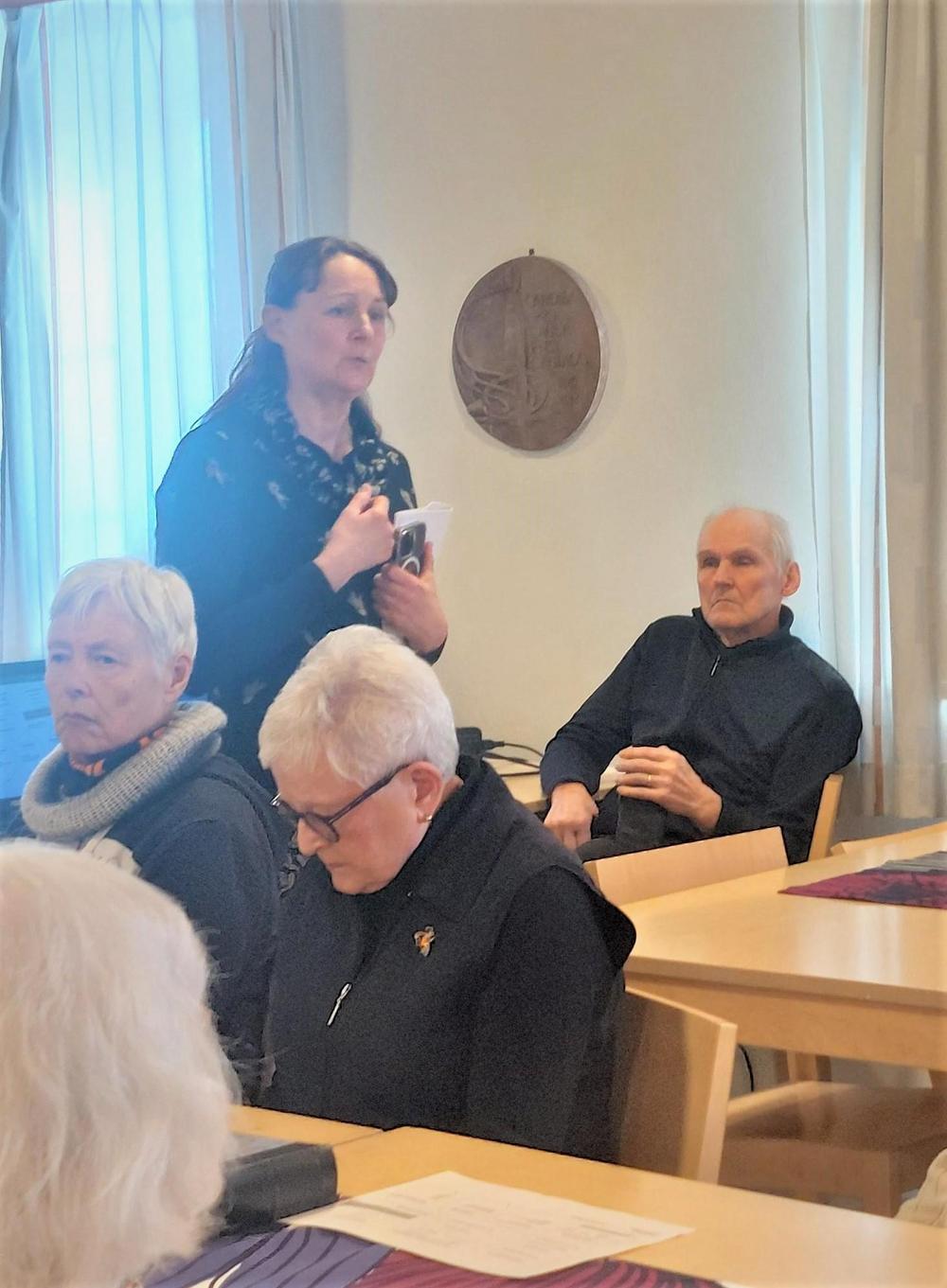 Johanna Peltonen kertoi Pirkanmaan Aluehallinnosta ja sen Sote asioista. Paikalla oli paljon asiasta kiinnostuneita. Sote aiheutti myös paljon kysymyksiä
