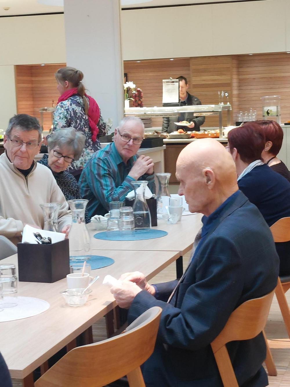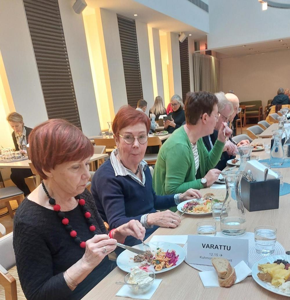 Lähdimme matkaan Kuhmoisista Luopioisten tilausbussilla klo 9:30. Matkalle ajankuluksi järjestimme arpajaiset missä oli mukavia palkintoja, bussin takaosa taisi kahmia eniten voittoja ☺ Ajoimme suoraan Pääposti Postitalon Food & Co suosittuun lounaspaikkaan Helsingissä, joka tarjoilee asiakkaille laadukasta lounasruokaa buffet-pöydästä. Meille oli hienosti järjestetty varatut paikat ja todellakin ruoka oli maistuvaa.