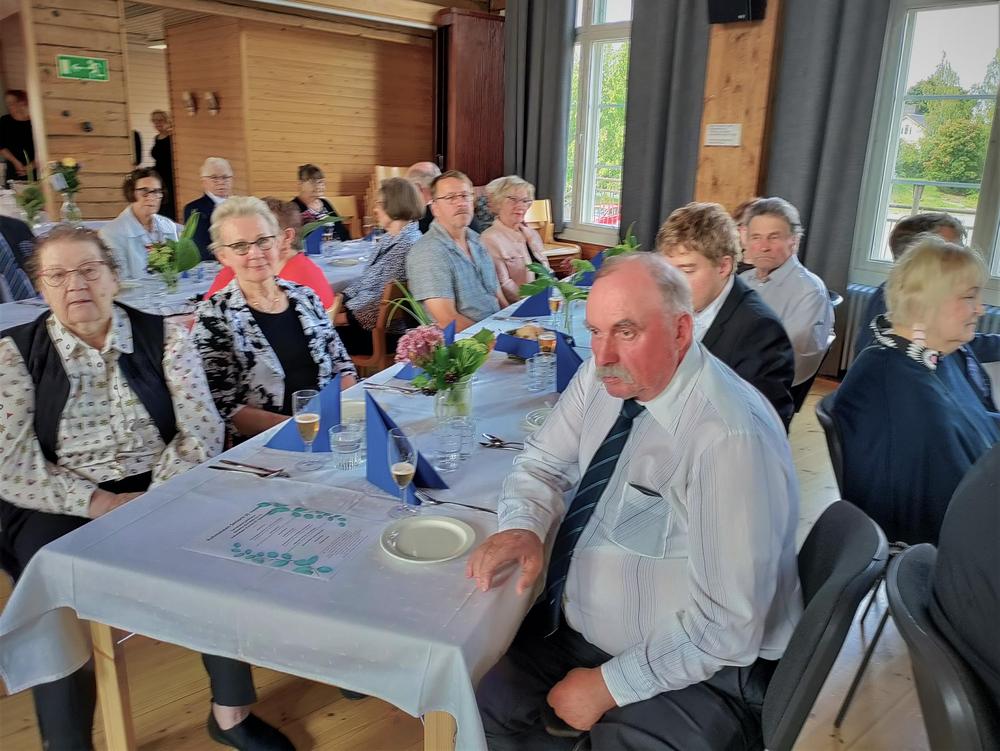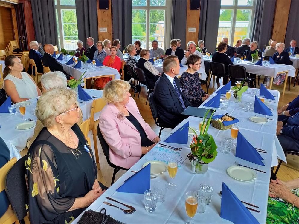 Kuhmoisten kunnan onnittelut Senioreille toi kunnanjohtaja Valtteri Väyrynen. Hän kiitti yhdistystä monipuolisesta aktiivisesta toiminnasta yhteiseksi hyväksi. Kunnan ja Seniorien yhteistyö on mutkatonta ja koetaan tärkeäksi molemmin puolin. Yhdistyksen ilmaisema tuki kunnan toimille ajankohtaisessa terveysaseman vuodeosaston lakkauttamisuhassa olisi tervetullut.