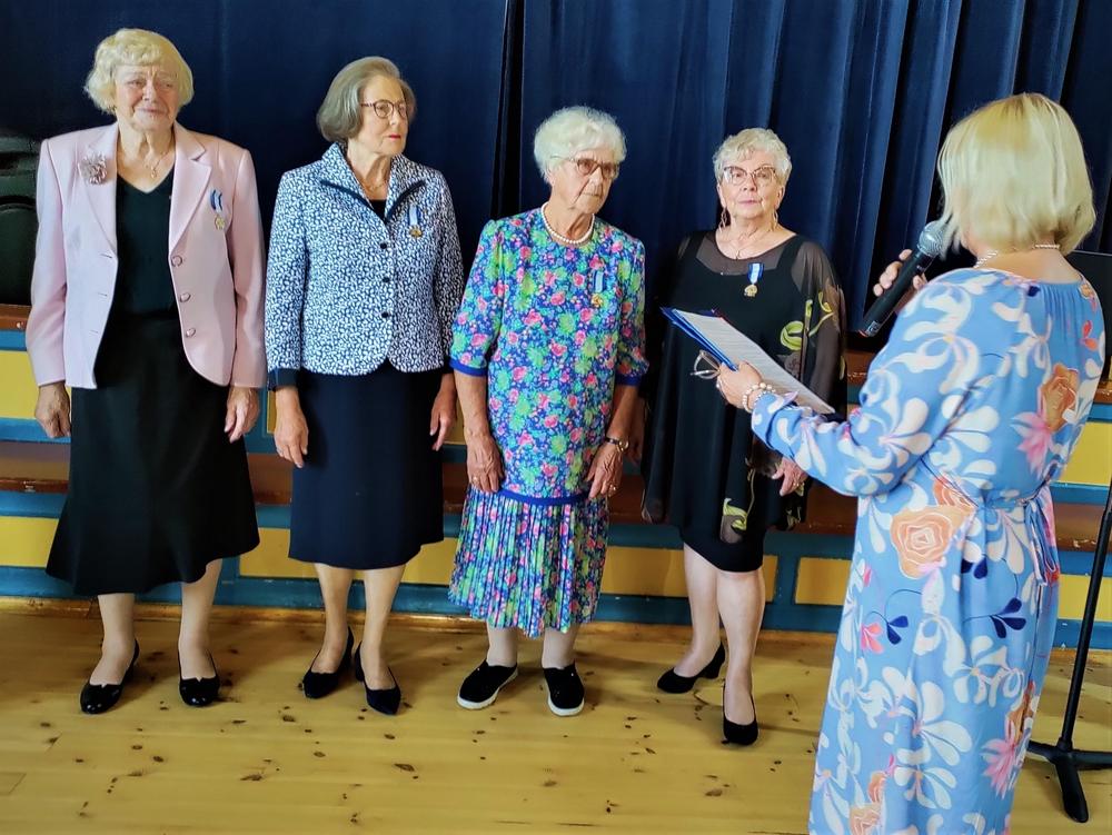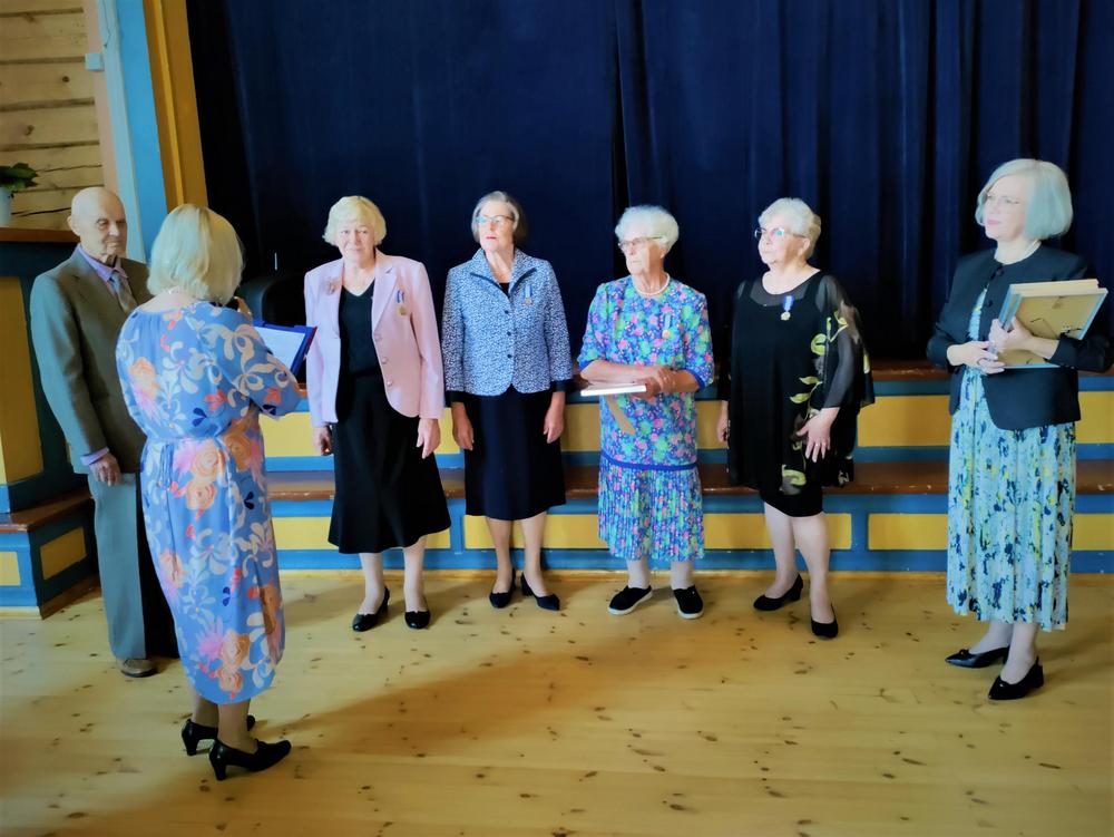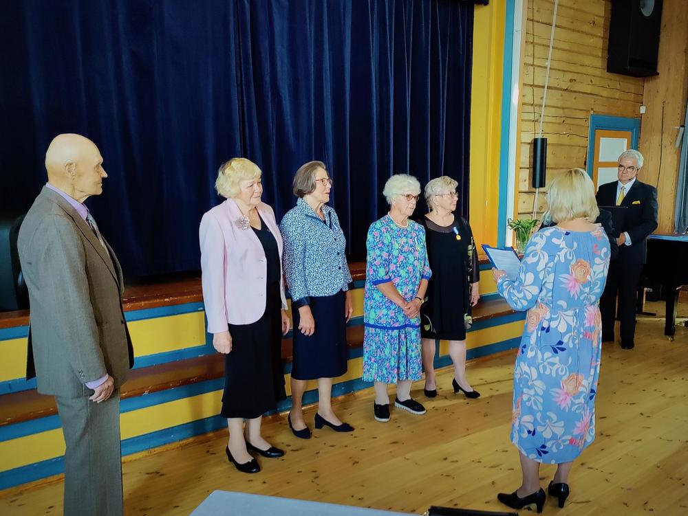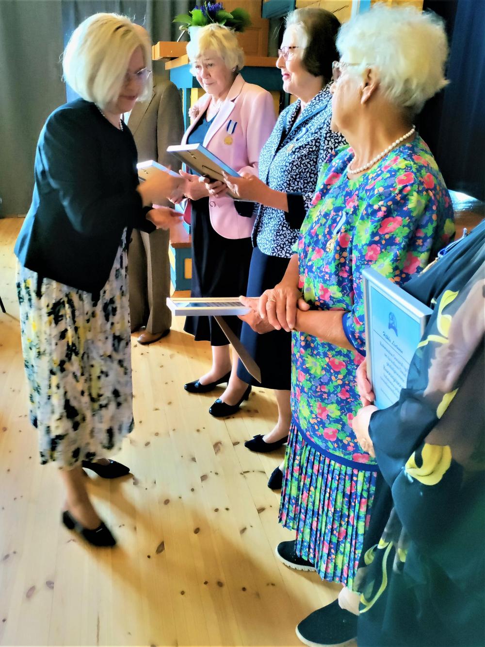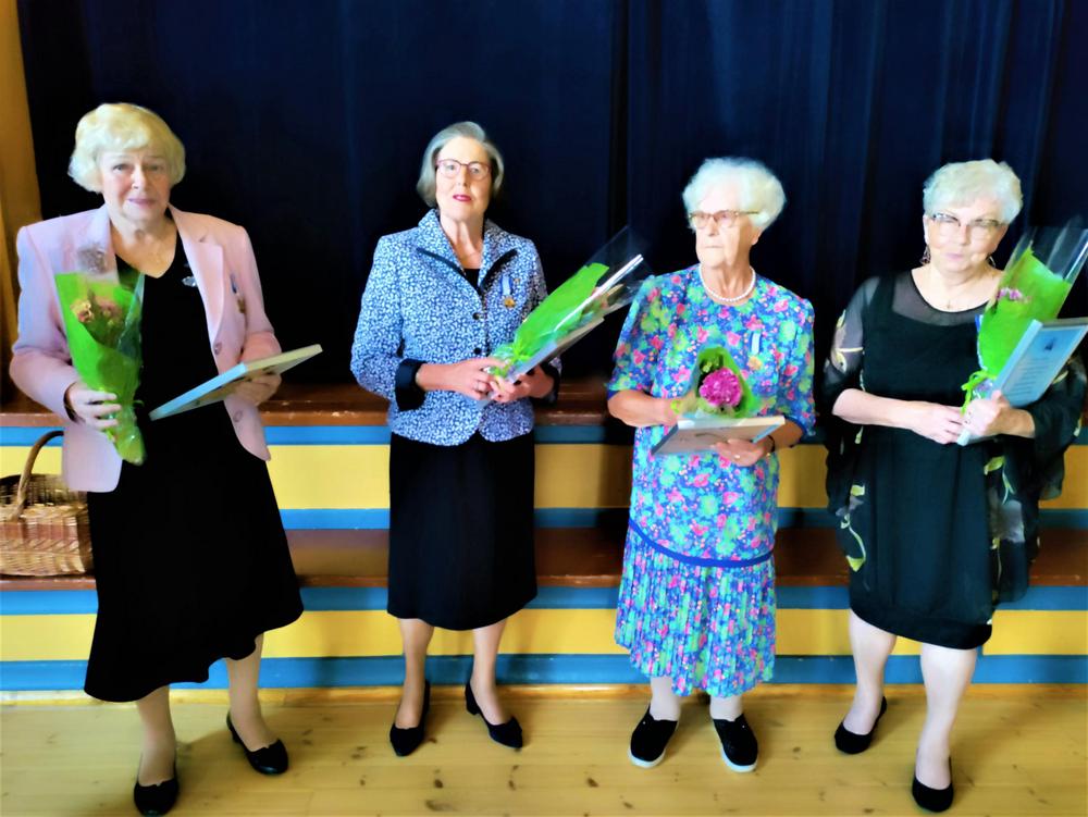 Juhlatilaisuus huipentui seremoniaan, jossa neljä Seniorien pitkäaikaista jäsentä palkittiin heidän arvokkaasta panoksestaan yhdistyksen hyväksi. Kunniajäseniksi nimitetyt Maila Kaiterlahti, Helinä Lehmussaari, Hilkka Lintunen ja Merja Peltola saivat kunniakirjat. Onnittelukukat uusille kollegoilleen ojensi nykyinen ainoa kunniajäsen Veijo Siitonen.