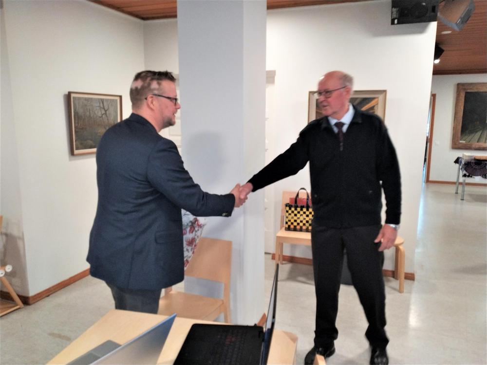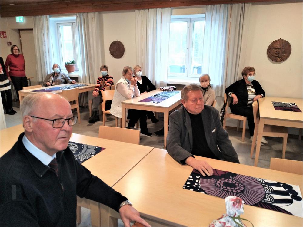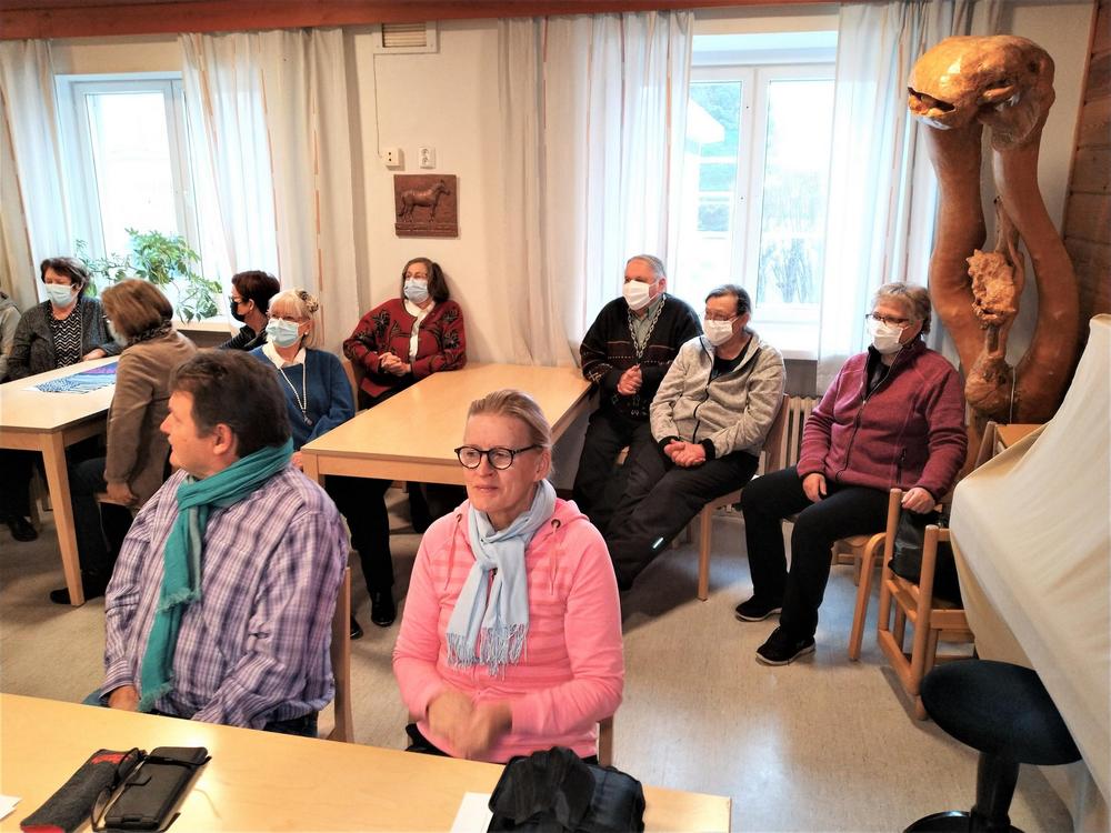 Kunnajohtaja Valtteri Väyrynen kävi esittäytymässä tapaamisessamme tiistaina. Saimme kuulla mielenkiintoisen esittelyn hänen työhistoriastaan. Paikalla oli lukuisa joukko kiinnostuneita jäseniämme paikalla. Esittelyn jälkeen Seija Tanninen esitteli ottamiaan kuvia Kuhmoisten kyliltä. Kuvat olivat monipuolisia ja paljon kertovia monipuolisesta kunnastamme. Toivotamme Valtterille pitkää ikää työskentelyllesi Kuhmoisissa ja Seijalle innostavia kuvauskeikkoja upeassa luonnossamme.
