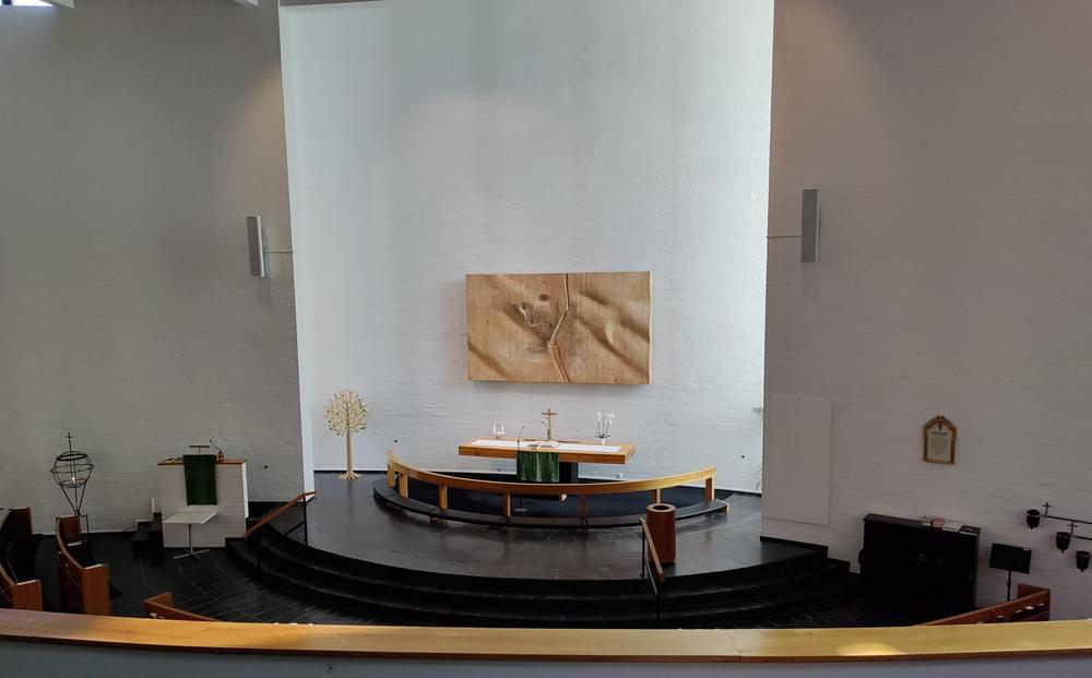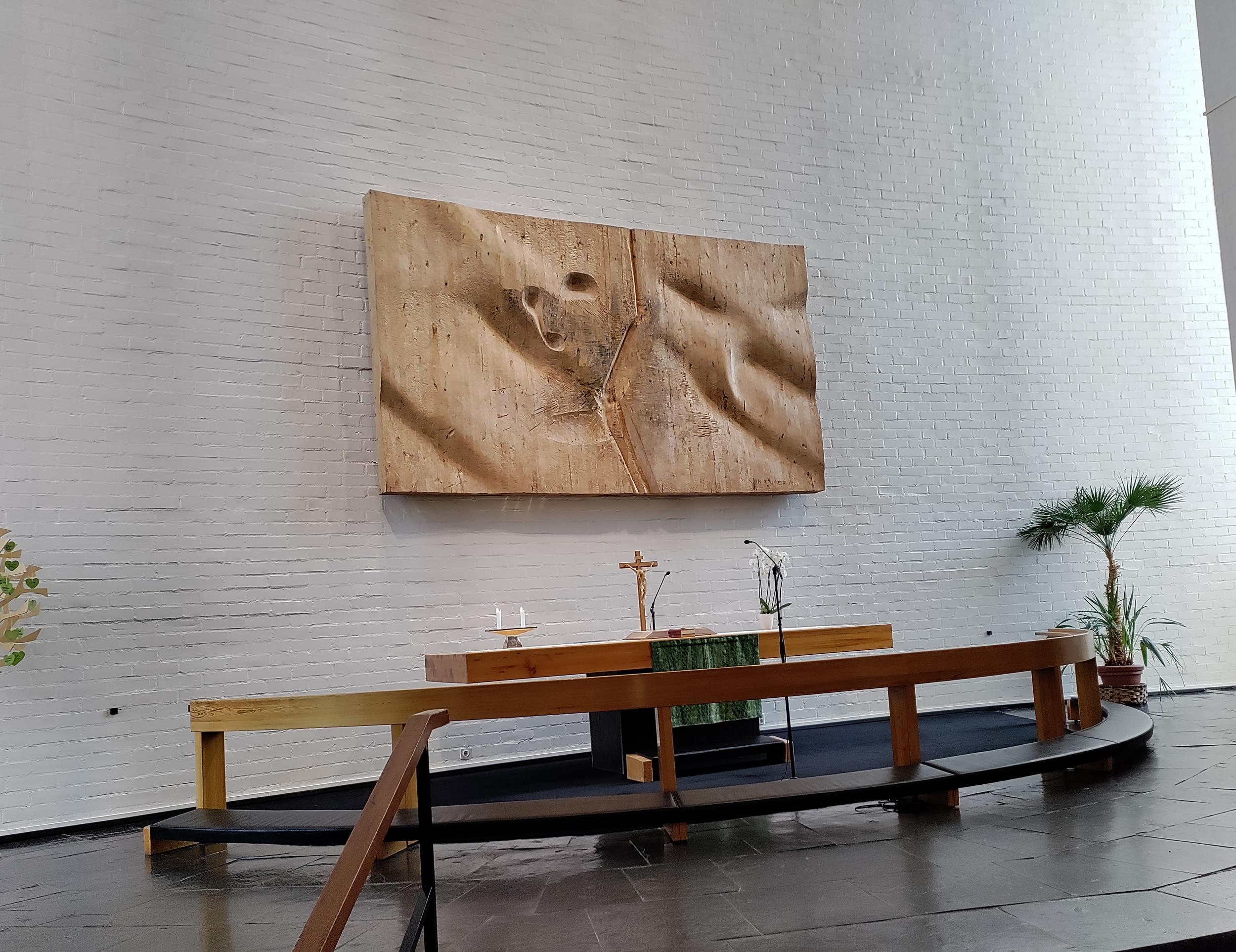Koivupuisen abstraktin alttariveistoksen Golgatan kallio teki Kain Tapper, kirkon tekstiilit suunnitteli Dora Jung ja kynttilänjalat, kolehtihaavi- ja seppeletelineet Bertel Gardberg.