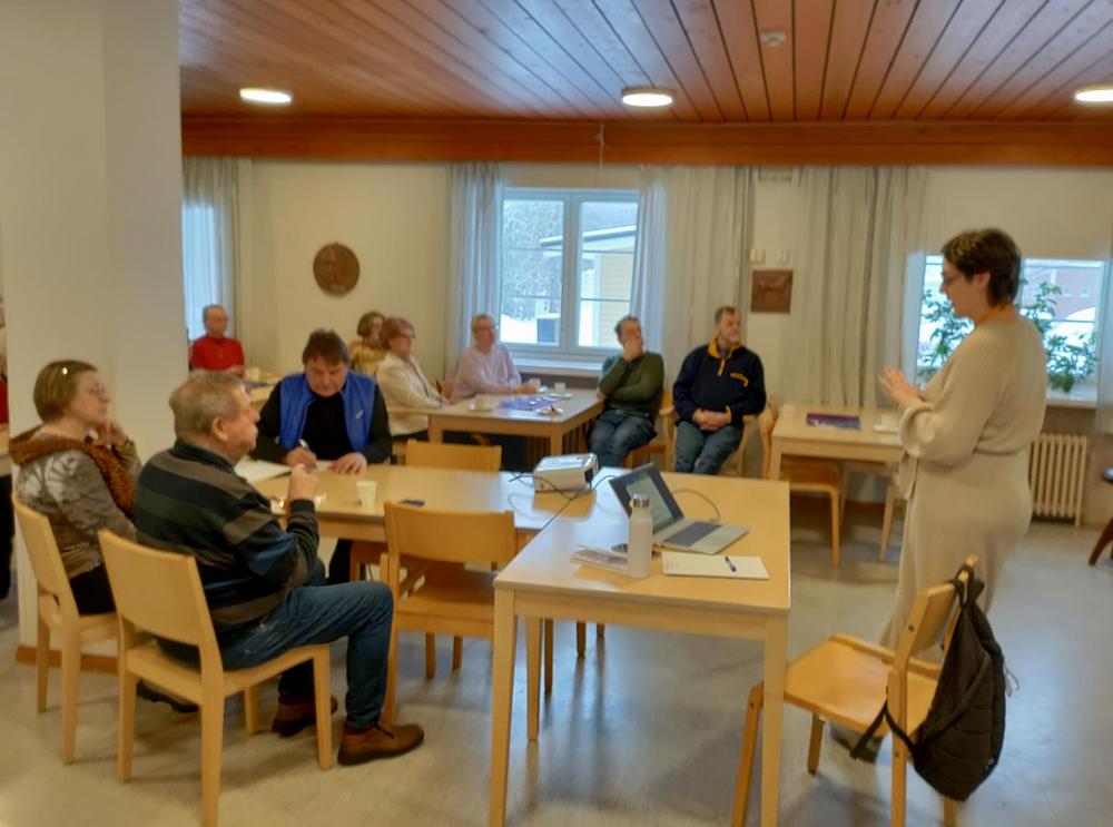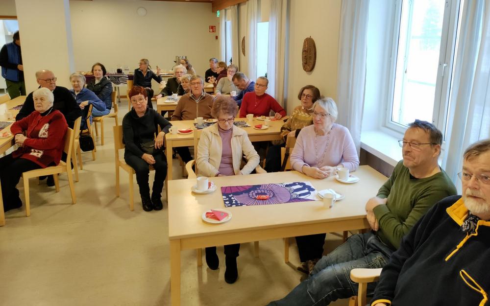 Tässä Merin tekemä yhteenveto tilaisuudesta. Lukekaan ja lähettäkää kommenttinne ja ajatuksianne suoraan Merille on meri.taivainen@kuhmoinen.fi Hyvinvointisuunnittelija Meri Taivainen kävi 28.1.2025 tapamaassa Kuhmoisten senioreita Kuhmolassa. Kunnassa tehdään ikääntyvien hyvinvointisuunnitelmaa, johon on tarkoituksena osallistaa Kuhmoisten ikääntyvää väestöä mahdollisimman laajasti.